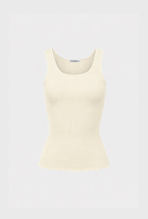 Silk Wool Ribbed Essential Tank White