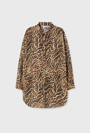 Cotton Silk Round Shirt Leopard