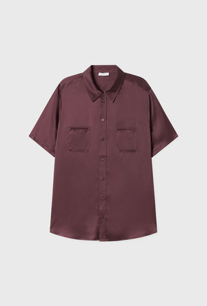 CLIP SILK SHORT SLEEVE BOYFRIEND SHIRT GERANIUM